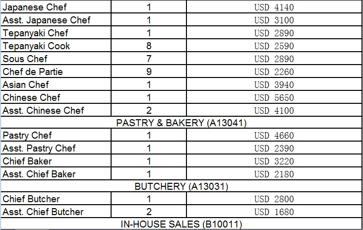 1、 招聘職位:前臺接待/禮賓員/VIP客服專員/人事助理/荷官/收銀員/導(dǎo)游/餐飲部服務(wù)生/娛樂部演藝人員/DJ/私人管家/客房部服務(wù)生/健身房教練/英文老師/幼兒園老師/廚師及面點師/調(diào)酒師/美容美發(fā)師/足療技師/免稅店銷售員/圖書館管理員/保安/護士/電子設(shè)備維護員/IT工程師等近百個崗位